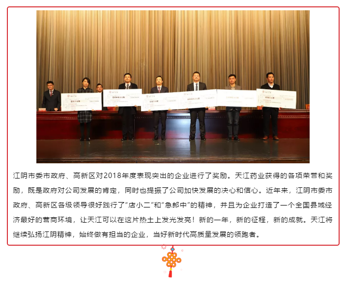 新年伊始 荣誉起跑 天江药业获得多个奖项