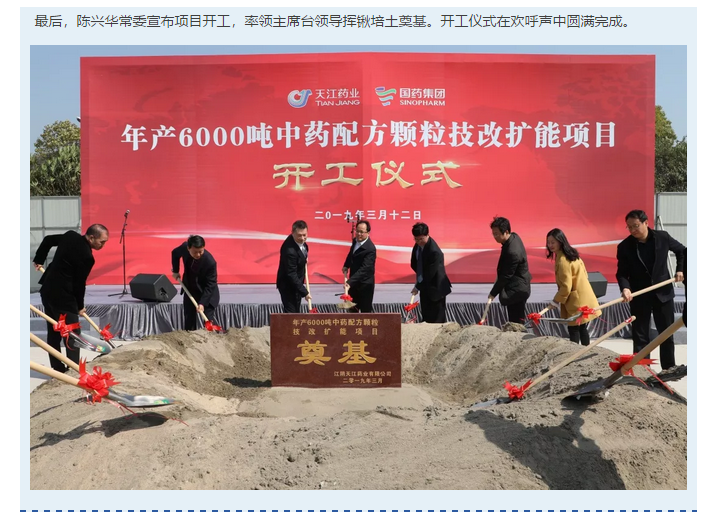天江要闻|天江药业“年产6000吨中药配方颗粒技改扩能项目”开工
