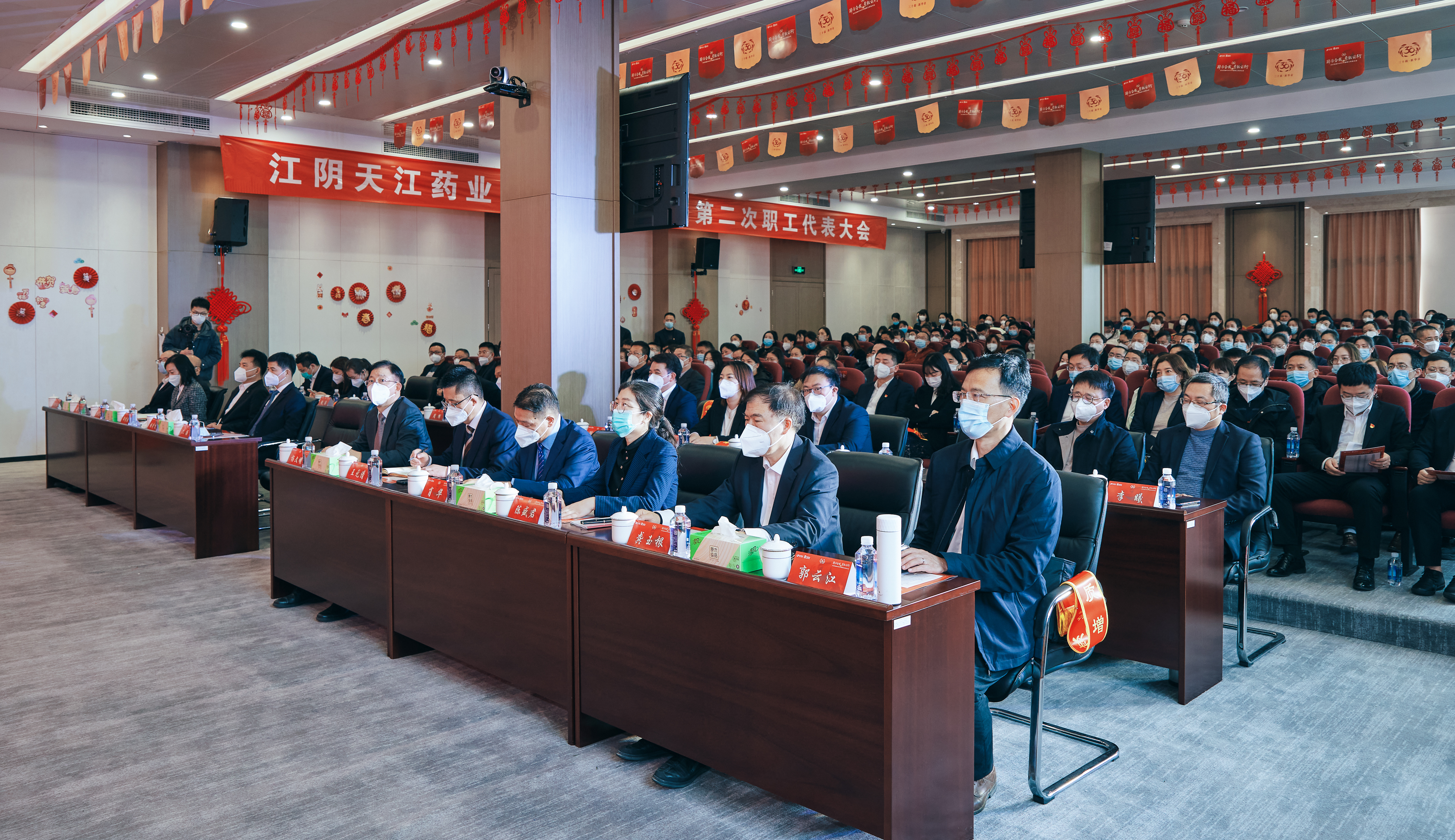 踔厉奋发新时代,勇毅前行向未来。1月12日,天江药业召开2022年度职工代表大会,中药控股党委书记、副总裁杨文明,江阴高新区党工委委员、管委会副主任六扬,天江药业领导班子成员、子公司负责人、职工代表共计280余人参加会议。