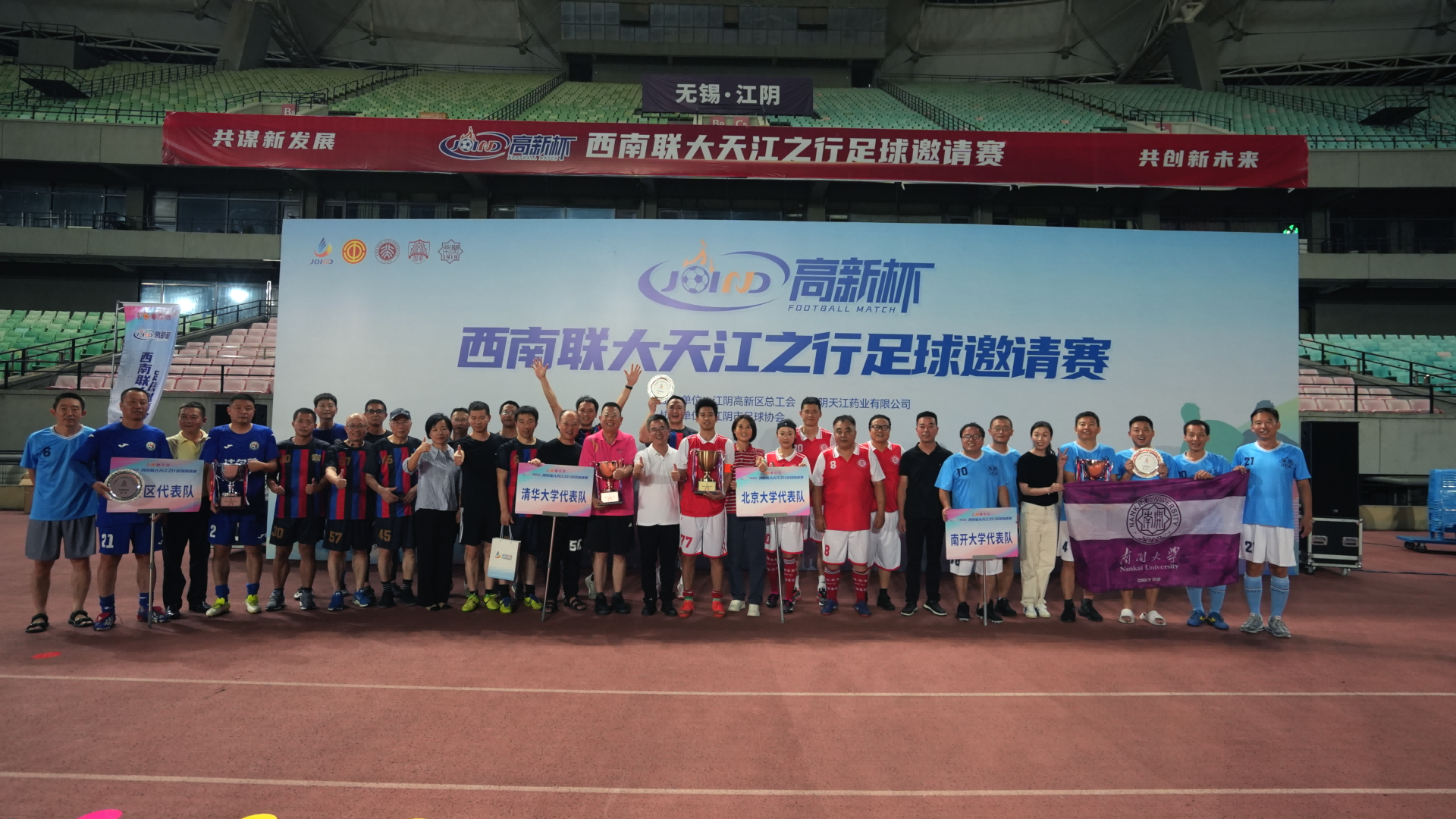 以球会友促交流,以赛传情展风采。8月19日傍晚,在嘹亮的国歌声中,“高新杯”西南联大天江之行足球邀请赛在期待中正式拉开序幕。赛场上,三校球员们全力拼搏,展现了三校的优秀的竞技水平与良好的精神风貌。揭幕战中,北京大学队与清华大学队1比1握手言和,并在接下来的“点球大战”中将全场氛围拉满,掌声、喝彩声不断,为江阴地区市民贡献了一场高质量的足球盛宴。经过两天的激烈的角逐,各支球队都发扬了“友谊第一、比赛第二”的体育竞技精神,展现了运动员们的赛场激情,拼出了实力,比出了成绩,也赛出了新风格。