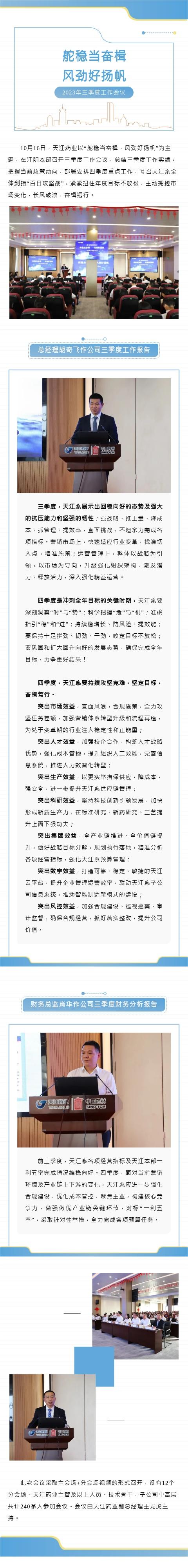 舵稳当奋楫 风劲好扬帆——天江药业2023年三季度工作会议顺利召开