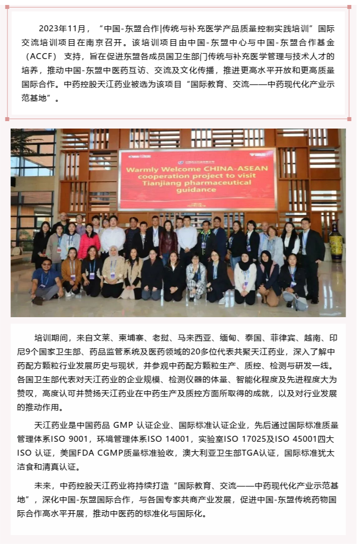 深化中国-东盟合作,推动中医药国际化发展——中国东盟合作项目团走进中药控股天江药业