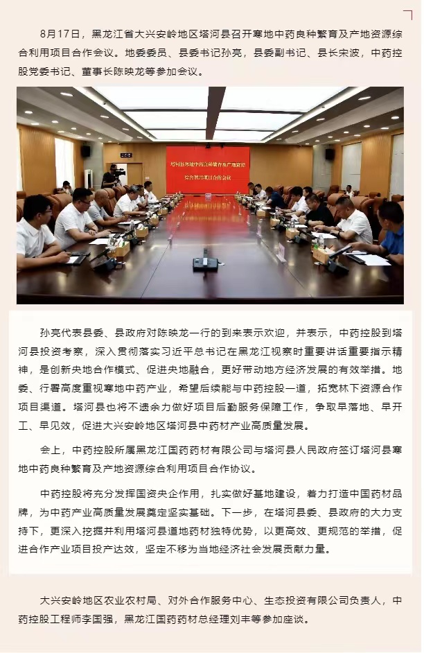 中药控股推进寒地中药良种繁育及产地资源综合利用项目在黑龙江大兴安岭塔河落地