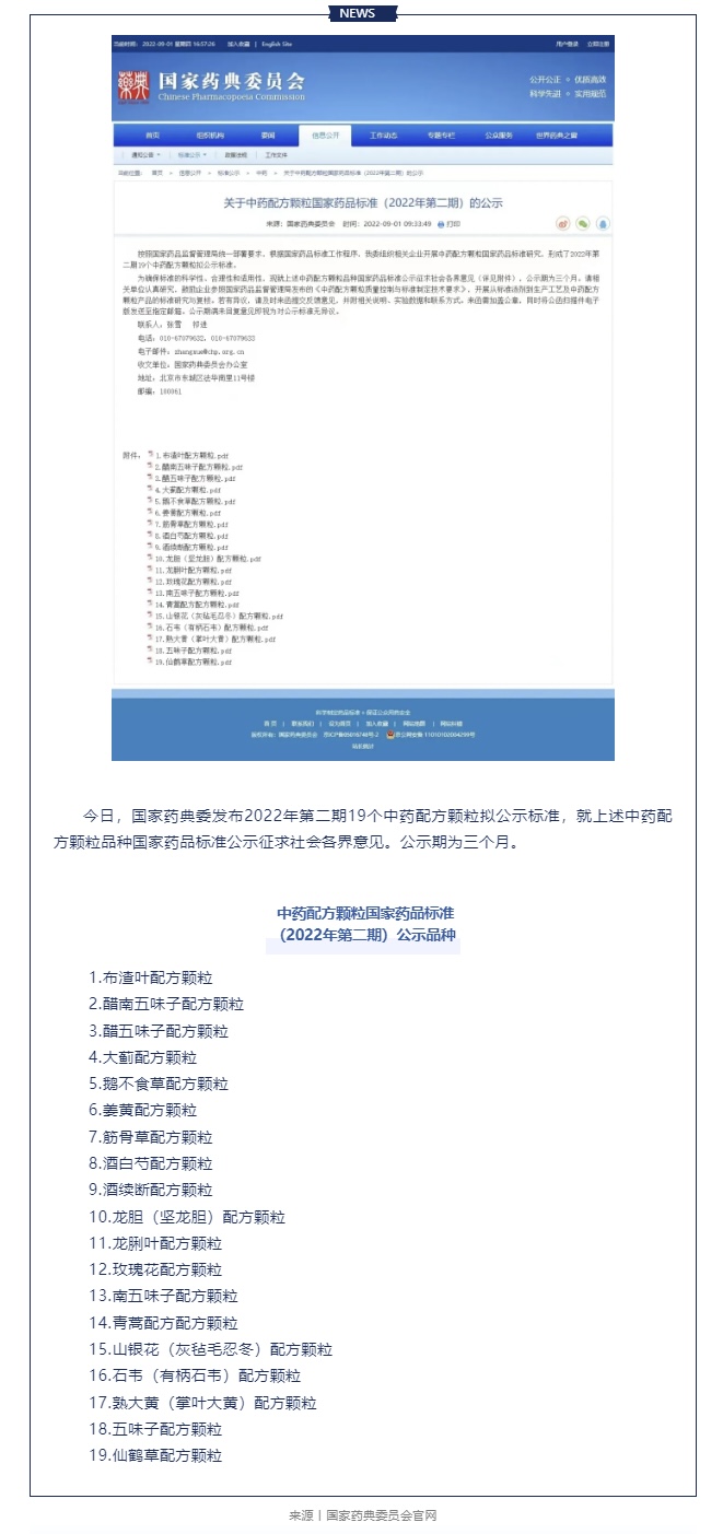 关于中药配方颗粒国家药品标准(2022年第二期)的公示