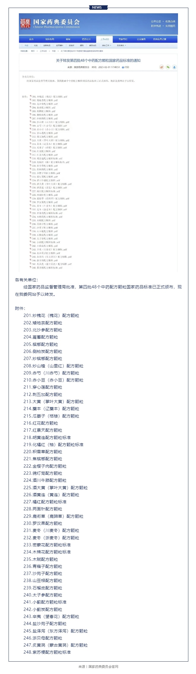 关于转发第四批48个中药配方颗粒国家药品标准的通知