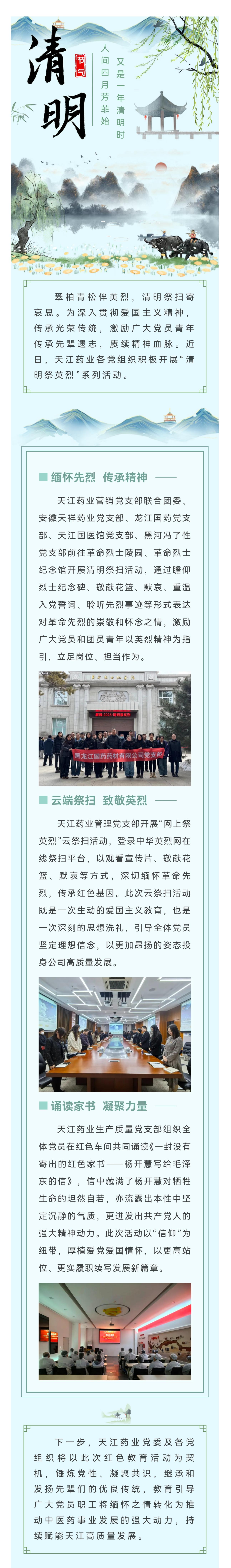 党建动态|天江药业各党组织开展“清明祭英烈”系列活动