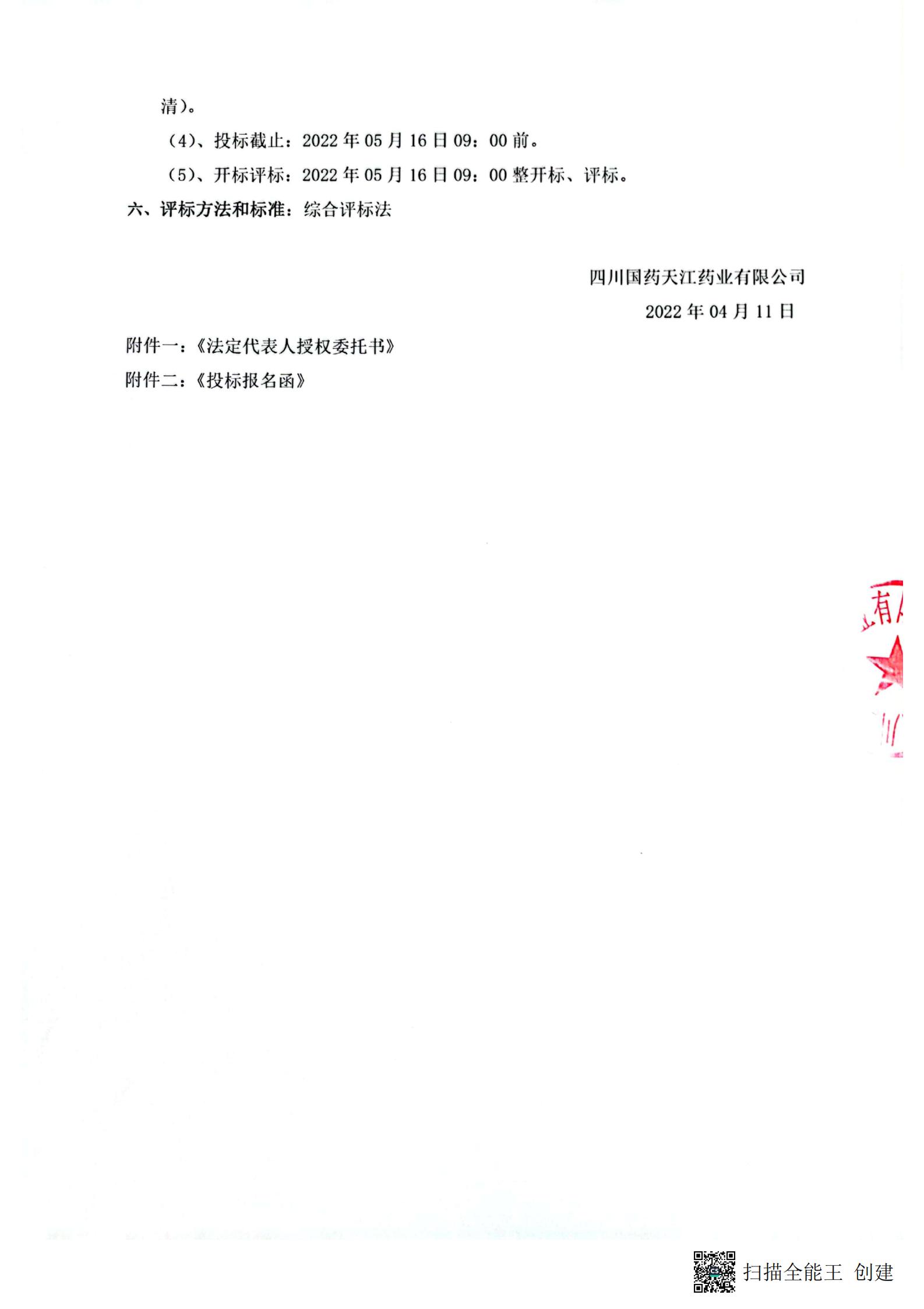 四川国药天江药业有限公司 搅拌提取罐设备采购 招标公告